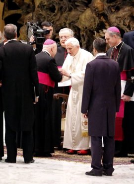 Бенедикт XVI провел генеральную аудиенцию в 10.30 в Зале Павла VI в Ватикане. Это первая его аудиенция после объявления об отставке 11 февраля.